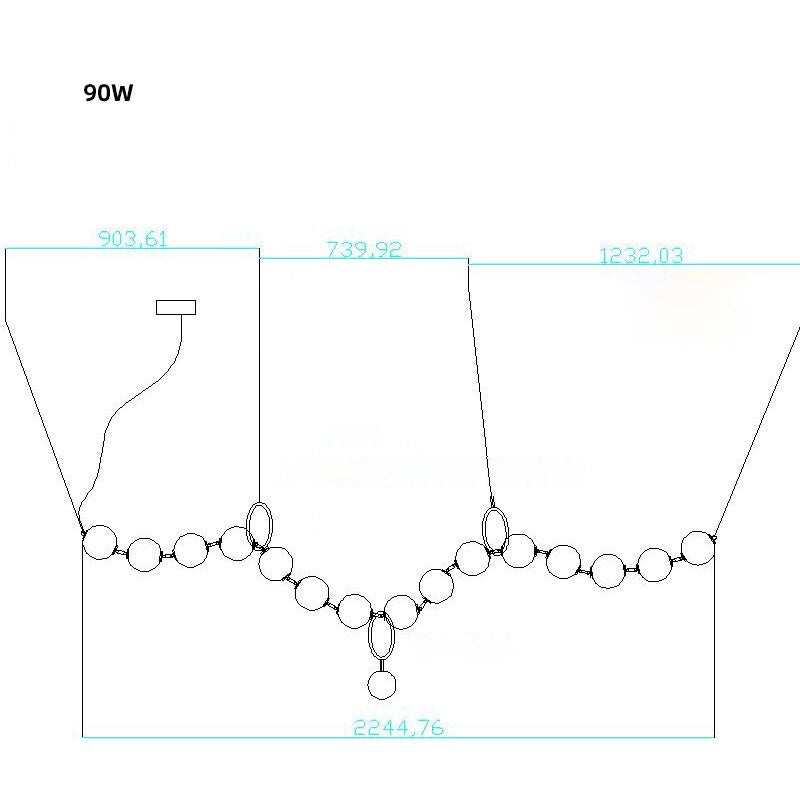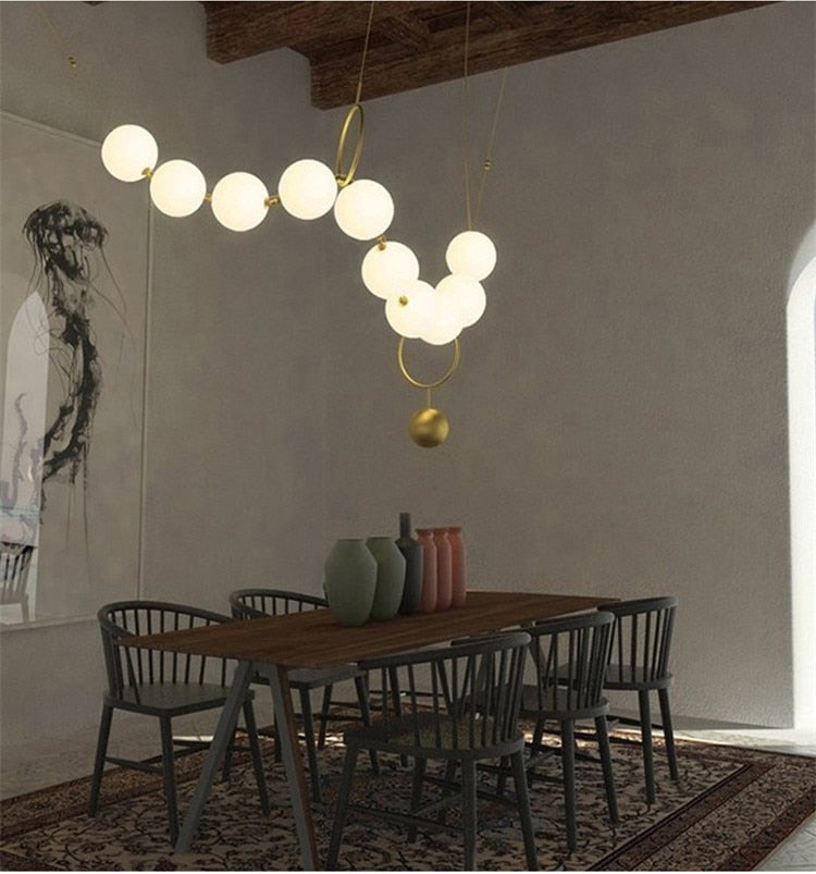 Coco style Chandelier is inspired by the design by Larose Guyon which evokes that supple, elegant and wondrous intersection of jewelry and light. Like a string of pearls, this lamp’s hand-blown glass globes can be arranged in several configurations to adapt to the setting where it will be admired. The finishing touch for this luminous gem is a counterweight and hook that can be added or moved from one “pearl” to another, providing all the flexibility needed for the lamp to fit its space to perfection.