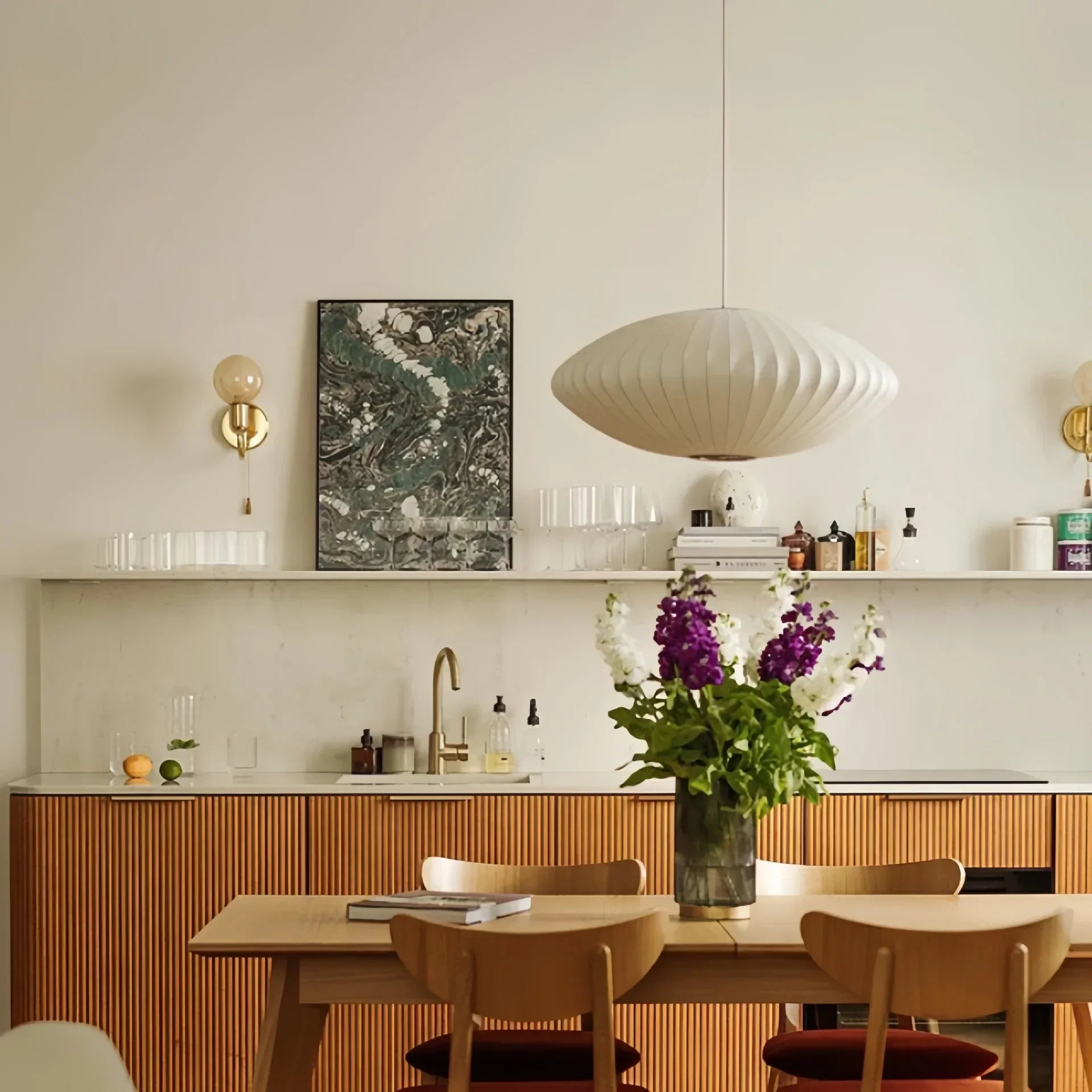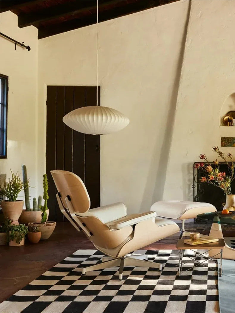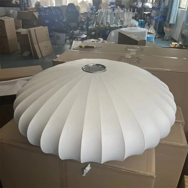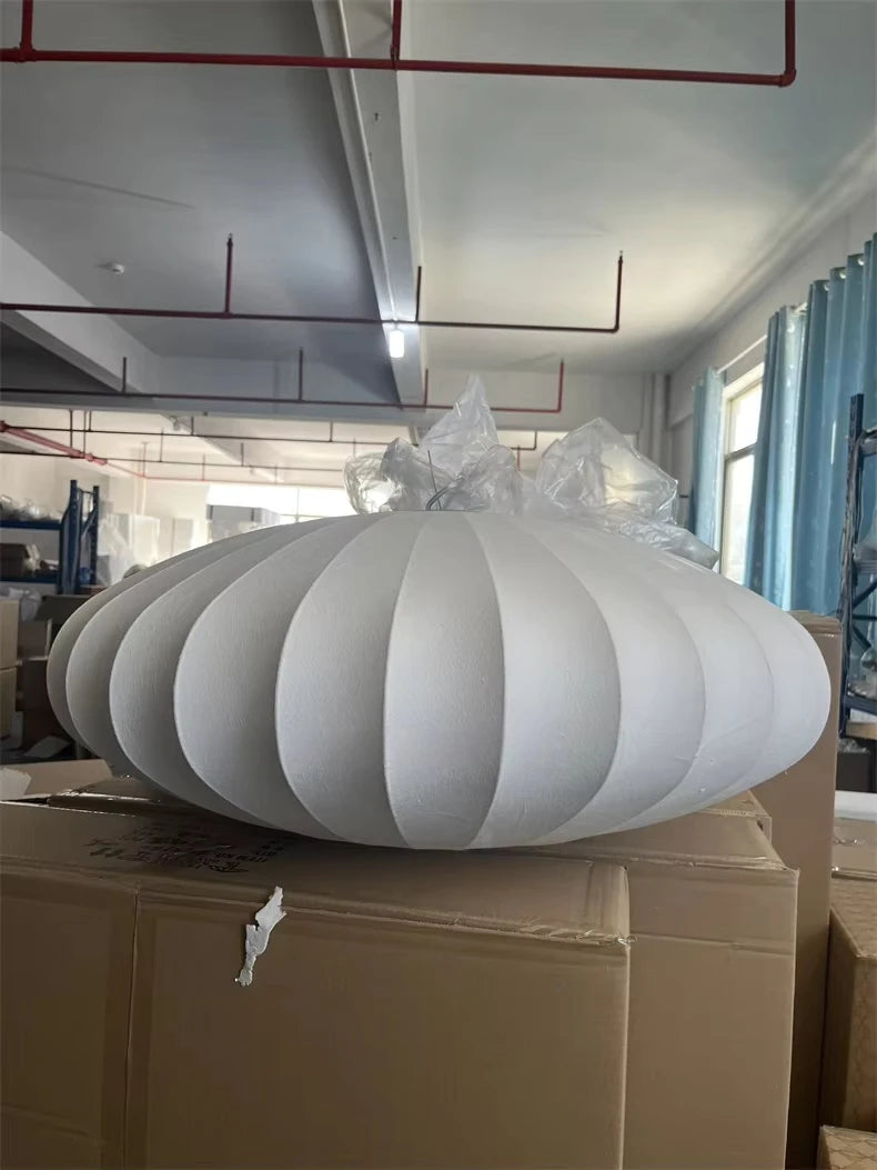 The Saucer style pendant is inspired of the Bubble Nelson collection, where the designer took inspiration from Swedish ceiling lights upholstered in silk that he wanted to acquire for his office.