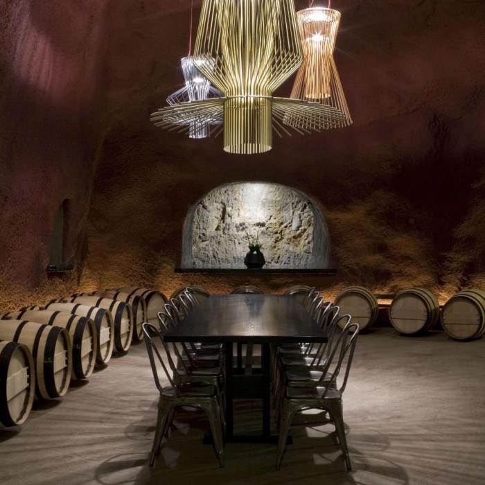 Allegro Assai Aluminum Pendant inspired by the Foscarini design, is a pendant made up of a group of lines that create an elegant, fascinating symphony in a suspended, almost magical equilibrium and give life to a new lamp designed to feature in large public and private spaces.