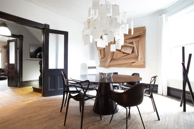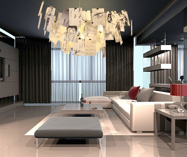 Zettel' z 5 style Pendant, is an exceptional suspension, with its light and poetic look. This suspension light pendant is made of pieces of Japanese paper which form a soft, airy volume around the light source. A real touch for the imagination, this suspension can be customized for everyone.