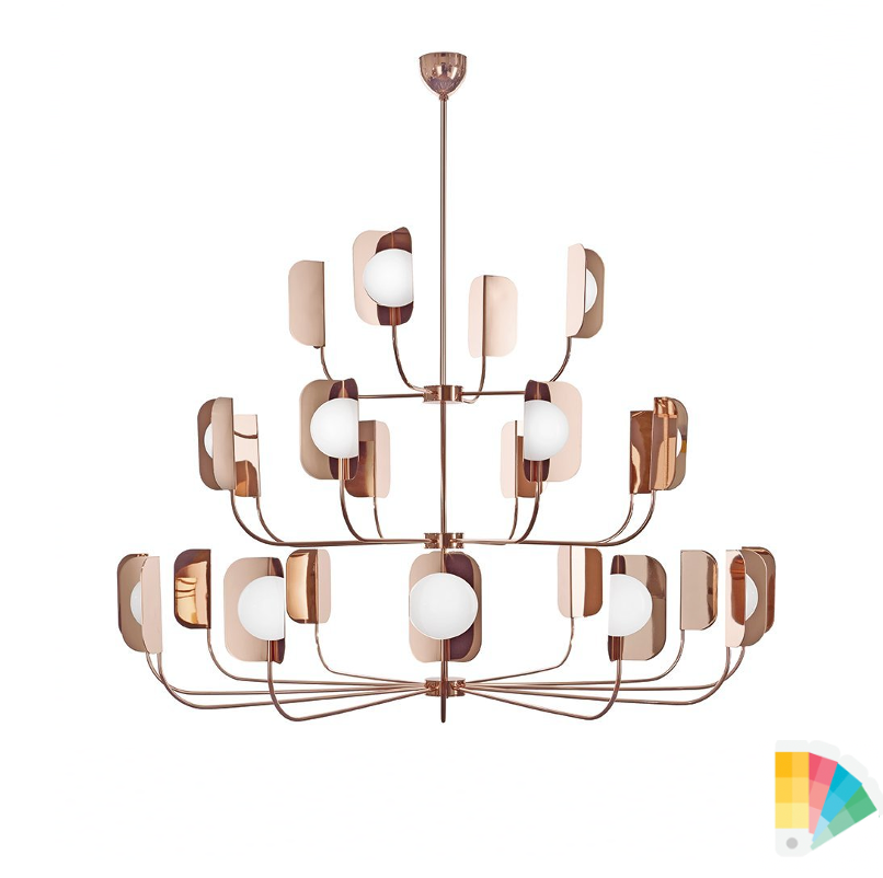 The beautiful Leaf style Chandelier is inspired bu the design by Matteo Zorzenoni. The Leaf Wall Scone is inspired by nature and harmony of spaces, Leaf has a light structure, result of an accurate planning research. Different from every other styles it blends into both classical and contemporary spaces. This minimalist Chandelier features a structure in hand-worked iron with a satin brass finish. It is ideal among traditional decor and more contemporary furniture. LED light included.