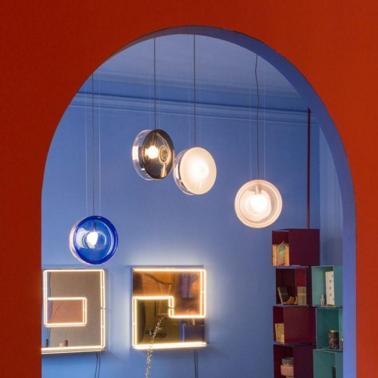 Orbital is a true work of art that is hand-crafted through the hand-blown glass technique, making each piece unique. Beautiful when it is off, this suspension comes alive when the light comes on to pass through its translucent structure and reveal effects of different colors.