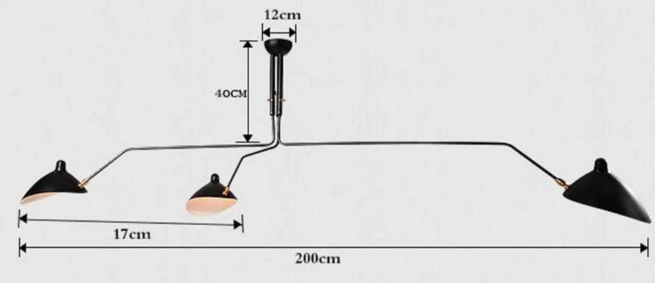 Our Serge Mouille ceiling light reproduction provides a unique touch of elegance thanks to its original design of three heads. The three arms extend from the center, with different lengths, with the largest arm leading wide and extensive, that perfectly covers the entire room with fabulous lighting. All three arms are cleverly positioned to target as much space as possible, making this light practical, as well as having wonderful designer flair that pays great attention to details, this ceiling light is guaranteed to be a head turning center piece in any room.