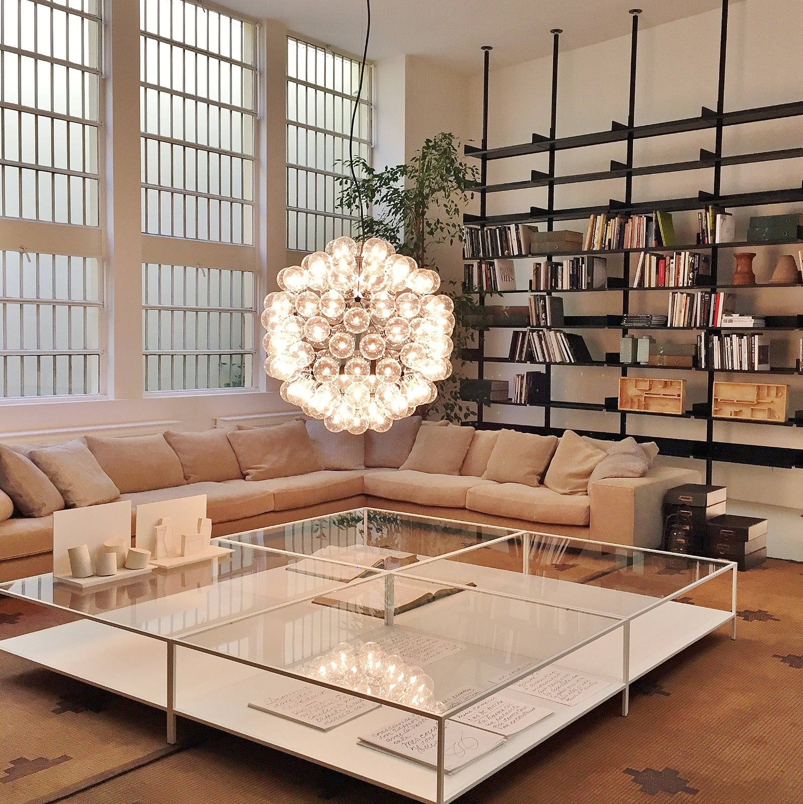 The Taraxacum 88 suspension light is based on the original Taraxacum created in 1960, the Taraxacum 88 reflects the iconic design’s 1988 update and includes a mixture of deep incandescent lighting and cool, polished aluminium triangles.