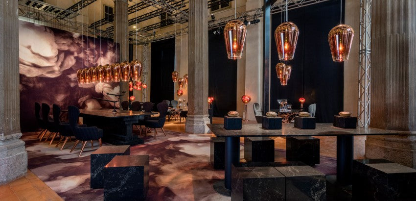 A metallised tear drop pendant that focusses the lightbulb’s output into a satisfyingly round and luminous circle. Its metallised finish graduates from completely reflective to transparent along the body of the light.